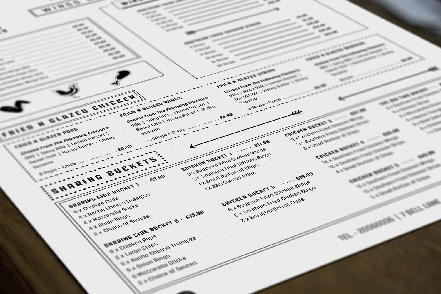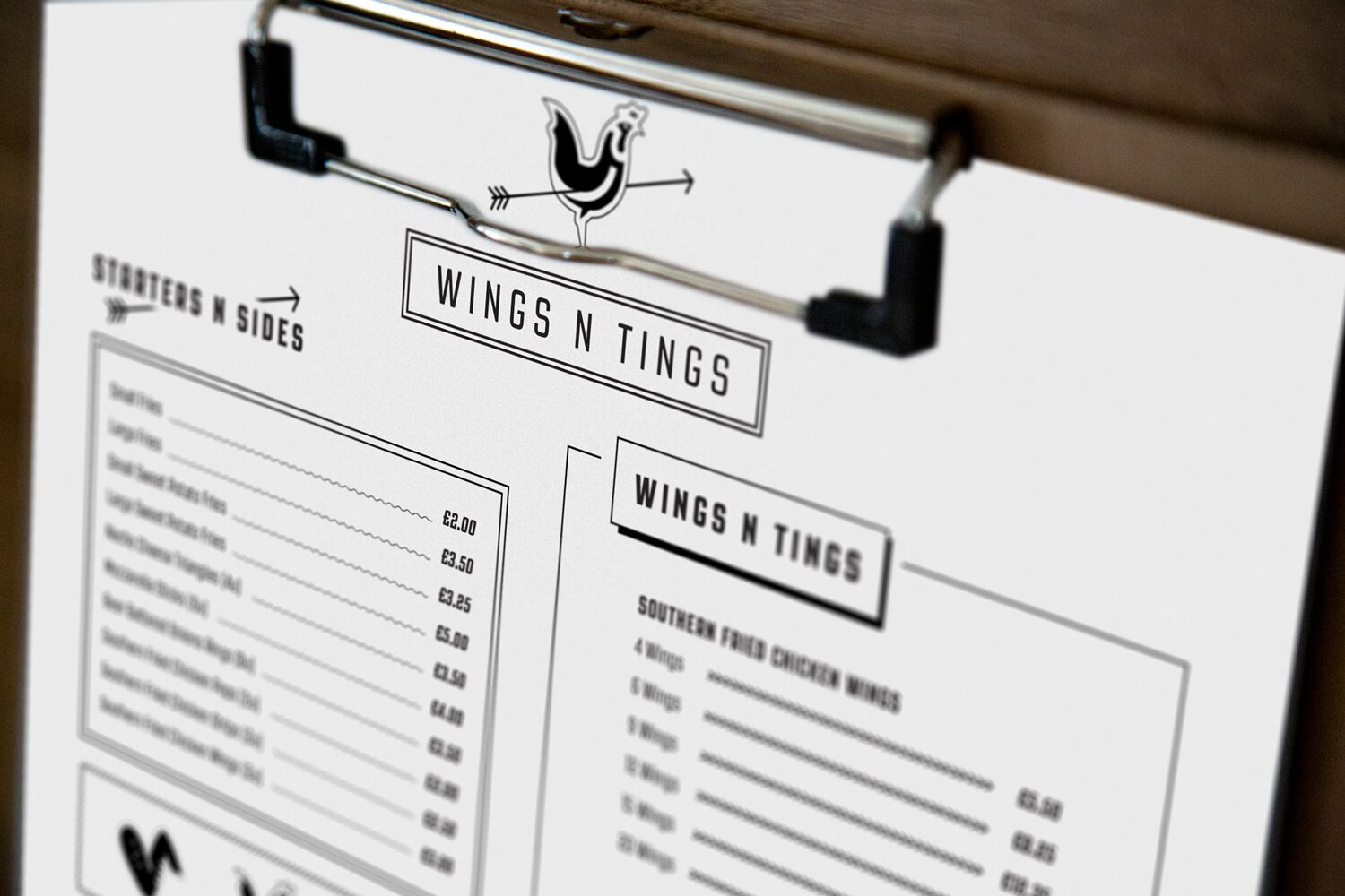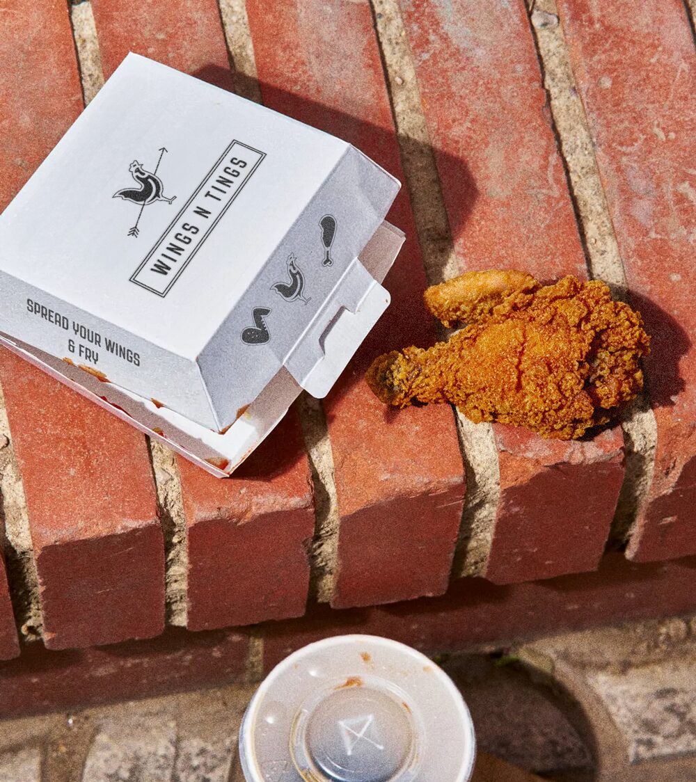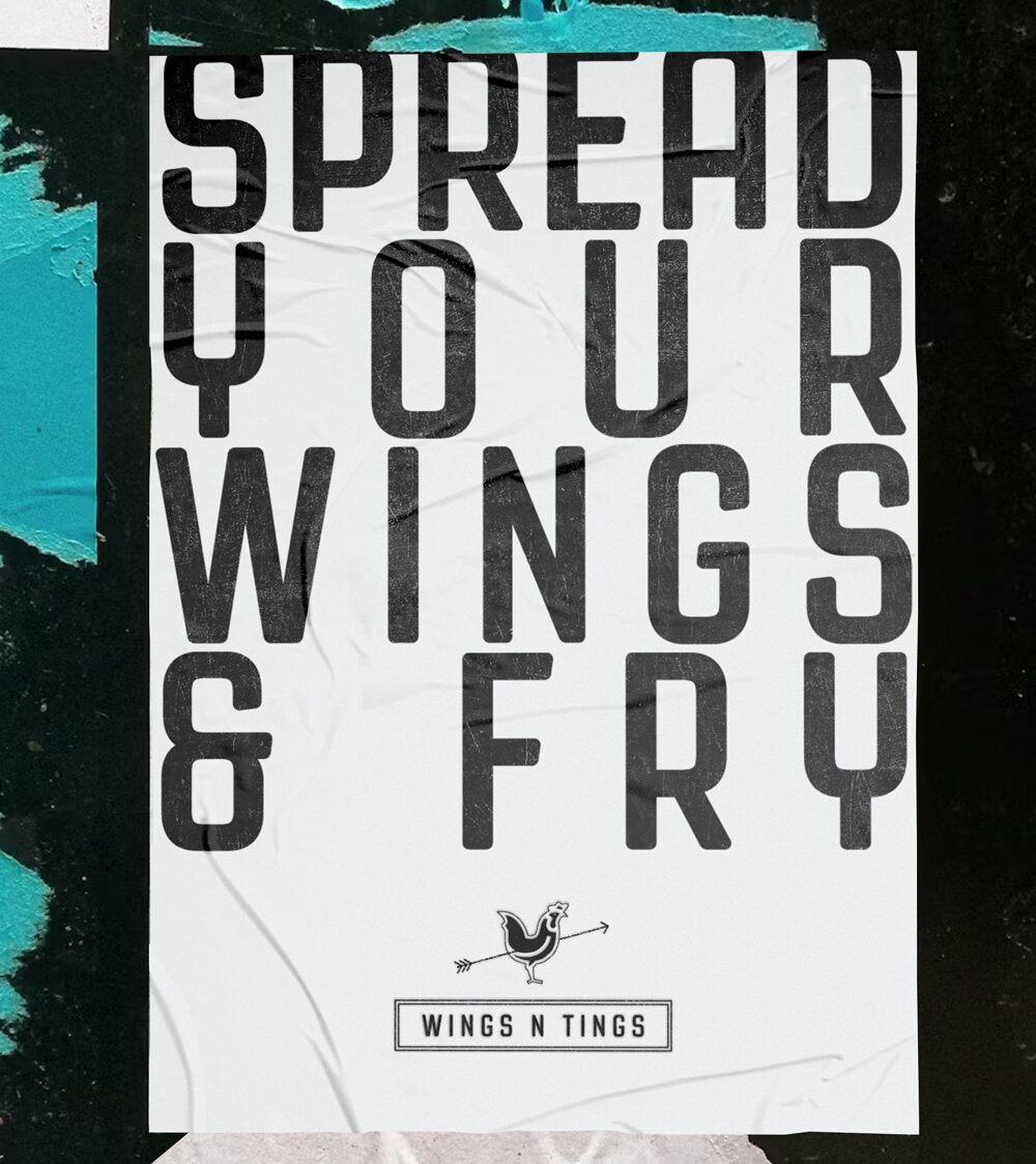 The branding for Wings N Tings was built around a strong, contemporary visual identity that combined playful printed-style illustrations with clean, confident typography. The logo and design elements were crafted to feel modern yet approachable, striking a balance between simplicity and personality. The use of graphic patterns and textured details added depth and character across the packaging and menu, helping to create a distinctive and cohesive brand experience. This thoughtful, design-led approach gave Wings N Tings a unique presence in the market, reflecting its fun, no-fuss attitude and commitment to quality.